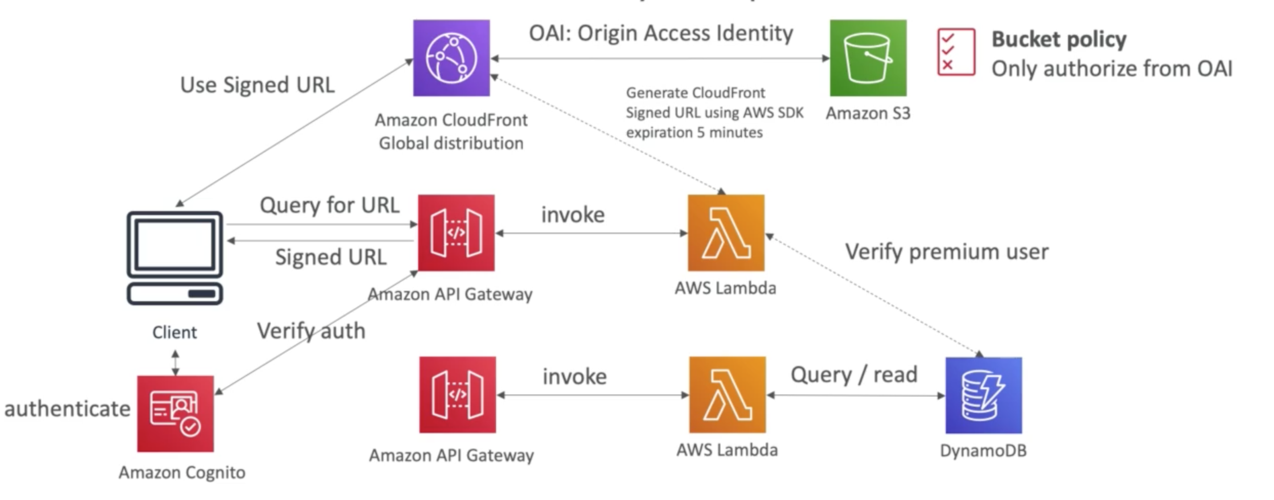 - CloudFront can only be used with Signed URLs to prevent unauthorized users